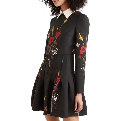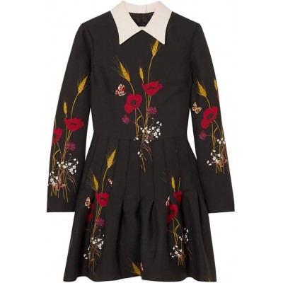 Valentino miniabito plisado en lana y seda impresa floral de segunda mano