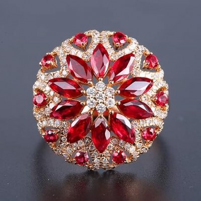 página de título > Anillo de oro Epinki 18K para mujer, con rubí de laboratorio de 2.21CT y moissanita de 0.49CT – Joye