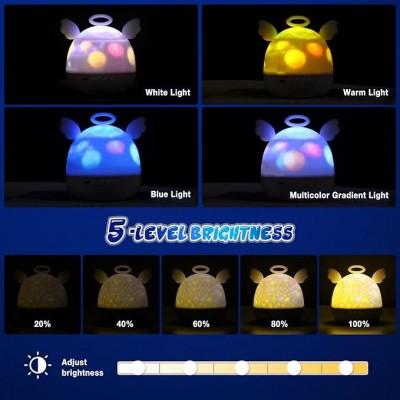 Ritual Nocturno Personalizado: Cuatro suaves colores de luz y cinco niveles de brillo ajustables crean un acogedor ambiente pre-sueño. Equipada con 20 suaves canciones de cuna, nuestra lampara niños dormir proporciona una atmósfera cómoda y cálida adecuada para la iluminación y música de fondo de cuentos antes de dormir