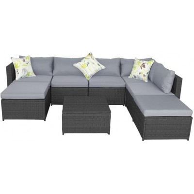 página de título > Kccuzo El conjunto de muebles de exterior con sofá de ratán acolchado en mimbre se usa para b