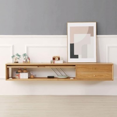【Alta qualità】 Realizzato con materiale in legno di alta qualità e struttura robusta, il ripiano TV presenta un'eccellente lavorazione artigianale; con una finitura liscia, il mobile TV sospeso è leggermente strutturato; la resistenza all'acqua e all'abrasione lo rende facile da pulire.
