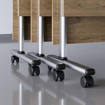 Design mobile Le ruote scorrevoli sulla robusta base in acciaio del tavolo semplificano lo spostamento del tavolo Flip da una posizione all'altra; i blocchi sulle ruote aiutano a mantenere il tavolo in posizione quando è parcheggiato e in uso.